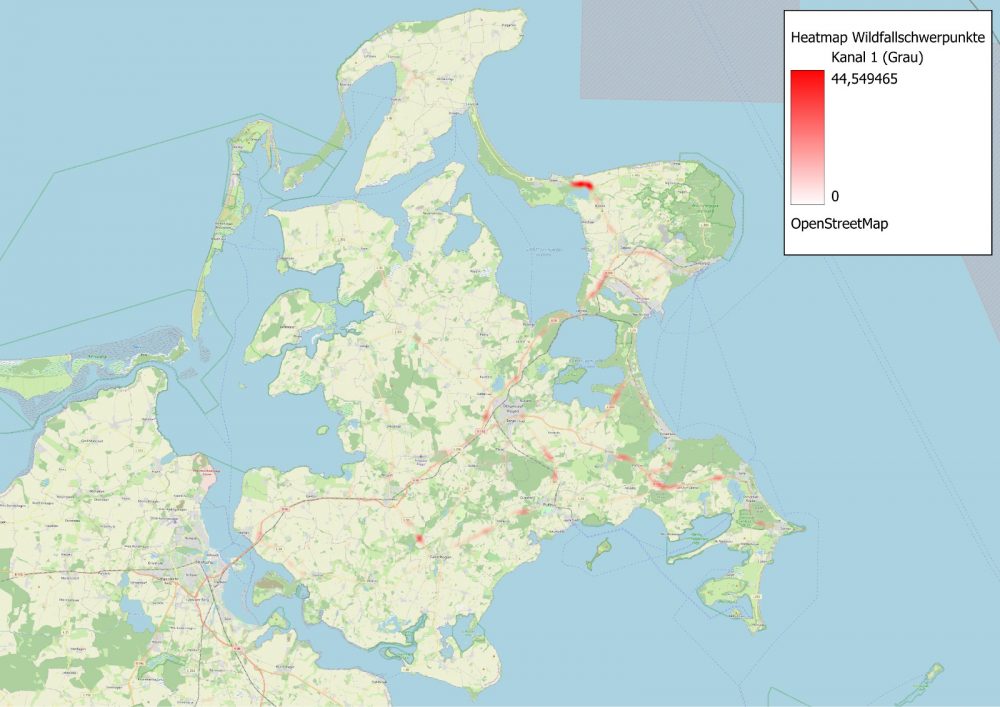Die auf Algorithmen basierende Auswertung und Beurteilung jedes einzelnen Unfallberichtes hat es erstmalig für Rügen und Hiddensee ermöglicht ein umfassendes und faktenbasierte Gesamtbild zu Wildunfallschwerpunkte und den denn Wildunfall beeinflussende Faktoren wie Wildart, Wander- und Ausbreitungskorridore von Wildtieren, Unfallzeitpunkt, DTV-Zahl, Straßenkategorie, natürliche Lichtverhältnisse, Jahreszeit, Witterung, Corona, dem Unfallpunkt umgebende landschaftsgebundene Nutzungen, Wildart, Lebensraumzerschneidung u.a. treffen können.