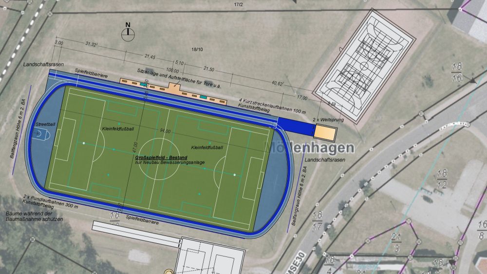 Die Gemeinde Möllenhagen hat das Büro blfa thomas niessen nach einem umfänglichen Ausschreibungsverfahren beauftragt, das veraltete Sportgelände der Gemeinde in einen modernen, zukunftsfähigen, multifunktionalen Sport- und Freizeitcampus für Sport, Spiel und Bildung zu überführen. Ziel der grundhaften Neugestaltung ist ein attraktiver, generationsübergreifender Außenraum mit dem Schwerpunkt auf Schul-, Vereins- und Breitensport zu schaffen.